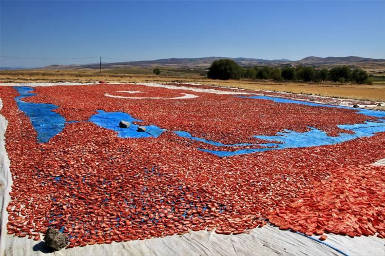 Kentteki kaliteli kurutmalık domates üretimine dikkati çekmek için bu yıl tarla günü etkinliğinde kurutmalık domateslerden yapılan ay yıldızlı Türkiye haritasının çok anlamlı ve görülmeye değer olduğunu vurgulayan Karahan, şunları kaydetti: