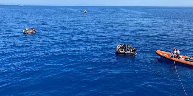 Sahil Güvenlik Komutanlığı ekipleri, 16 Ağustos 2022 tarihinde saat 12.20’de Aydın ili Kuşadası ilçesi açıklarında can salları içerisinde bir grup düzensiz göçmen olduğu bilgisini aldı.