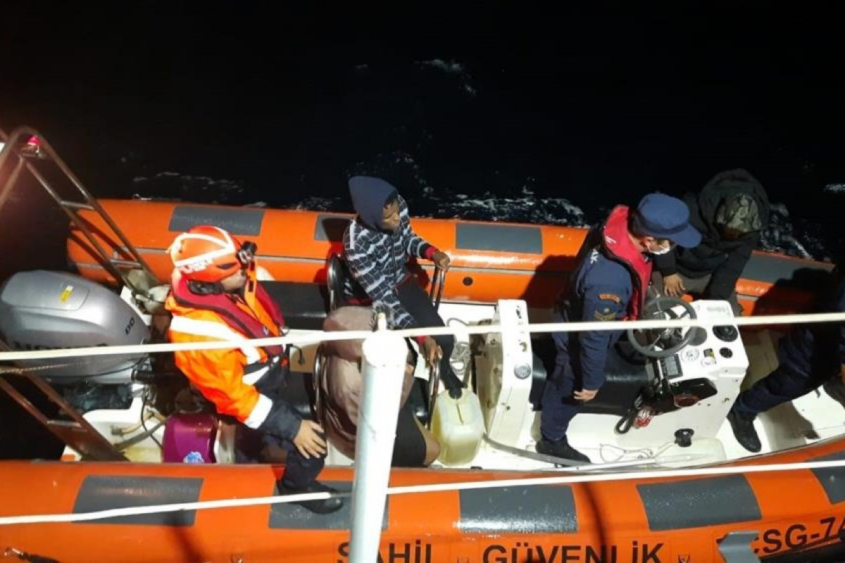 Aydın’ın Kuşadası ilçesi açıklarında yunan unsurlarınca Türk karasularına geri itilen 22 düzensiz göçmen kurtarıldı.
