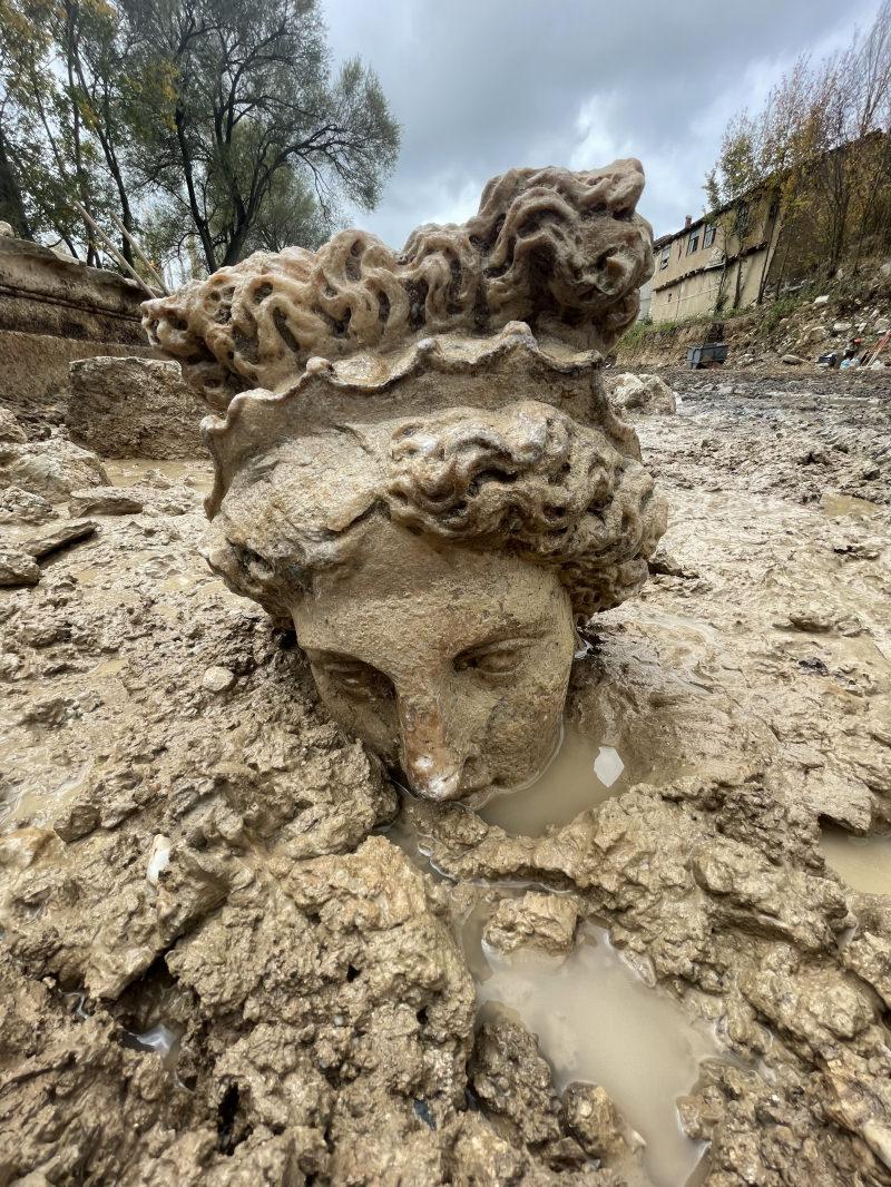 "Çaydaki kazı esnasında bizim için sürpriz olan buluntularla karşılaştık. Bunlar büyük boyutlu mermer heykellere ait başlardı. Bunlardan biri yaklaşık 50 santimetre yüksekliğindeki, aşk ve güzellik tanrıçası olarak bilinen 'Afrodit' heykel başı. Diğeri ise mitolojide şarap tanrısı olarak bilinen 45 santimetre yükseklikte 'Dionysos' heykel başı. Daha önceki çalışmalarımızda genellikle heykellerin gövdelerini tespit ederken açıkçası hiç baş bulamıyorduk. Bu heykel başlarıyla karşılaşmamız bizi oldukça sevindirdi."