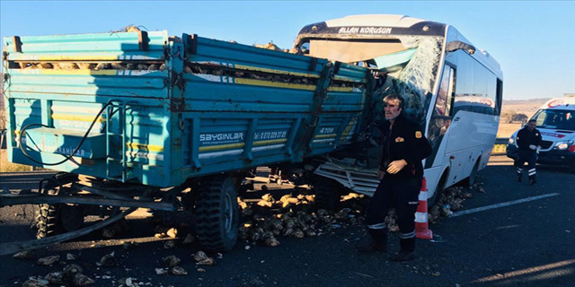 İbrahim U. yönetimindeki işçi taşıyan 43 HD 858 plakalı midibüs, Tavşanlı-Kütahya kara yolunun 20. kilometresinde aynı yöne seyreden Mükerrem G'nin kullandığı 43 AAD 925 plakalı pancar yüklü traktör römorkuna arkadan çarptı.