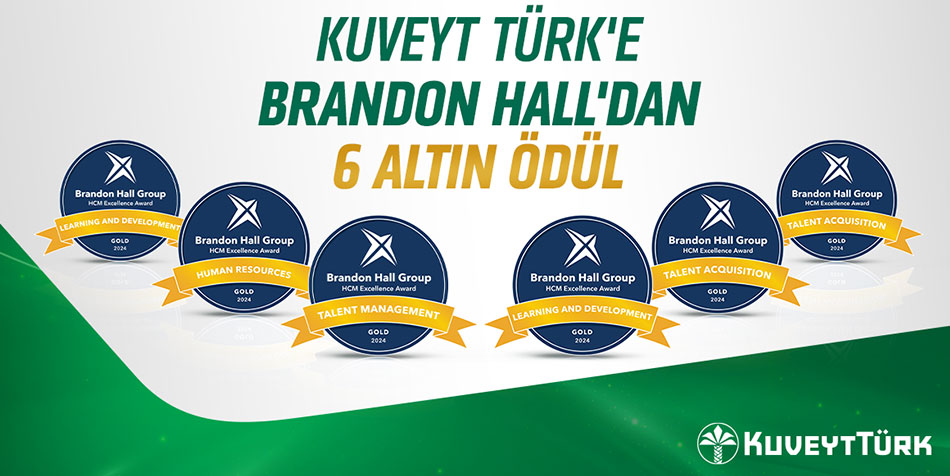 Brandan Hall Group HCM Excellence Awads 2024 ödülleri kapsamında Kuveyt Türk, “Stajyerlerin En İyi Şekilde Seçilmesi ve İşe Alınması”, “En İyi Yetenek Kazanımı Süreci”, “En İyi Kurumsal Kültür Dönüşümü”, “En İyi Yan Haklar, Sağlık ve Refah Programı”, “Harmanlanmış Öğrenme Programının En İyi Kullanımı” ve “En İyi Kurumsal Eğitim Üniversitesi” kategorilerinde altın ödüllerinin sahibi oldu.