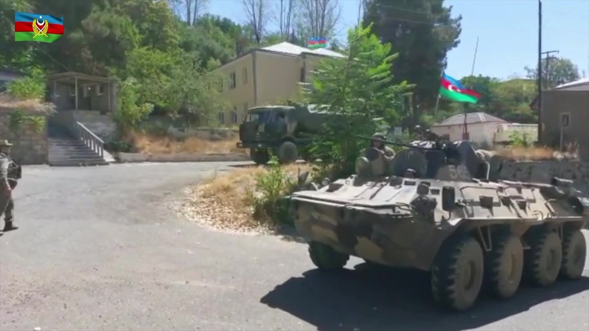 Sosyal medyada paylaşılan görüntülerde, Azerbaycan askerleri tarafından askeri araçlardaki hoparlörlerle Laçin şehrinde ezan sesinin yükseldiği görüldü.