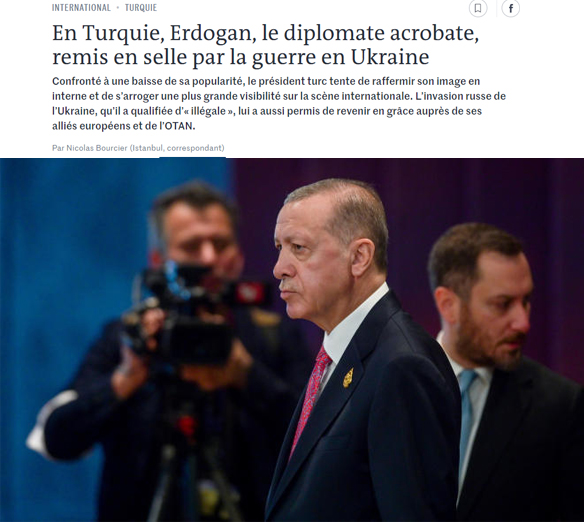 Fransız Le Monde gazetesi, Cumhurbaşkanı Erdoğan'ın hem Batılı devletlerle Rusya arasında hem de savaşın tarafları olan Rusya ile Ukrayna arasında yürüttüğü başarılı denge politikası hakkında çarpıcı bir analiz habere imza attı.
