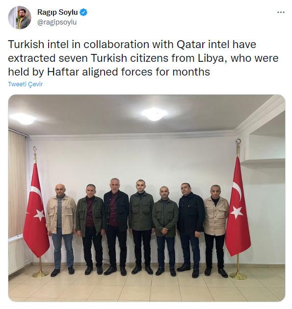 Libya'nın doğusunda asılsız iddialarla yaklaşık 2 yıldır alıkonulan 7 Türk vatandaşı, Milli İstihbarat Teşkilatı’nın Katar İstihbarat Teşkilatı'yla müşterek çalışmaları neticesinde yurda getirildi.