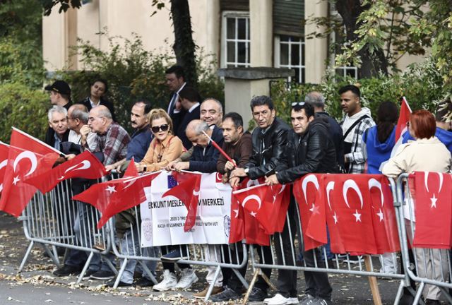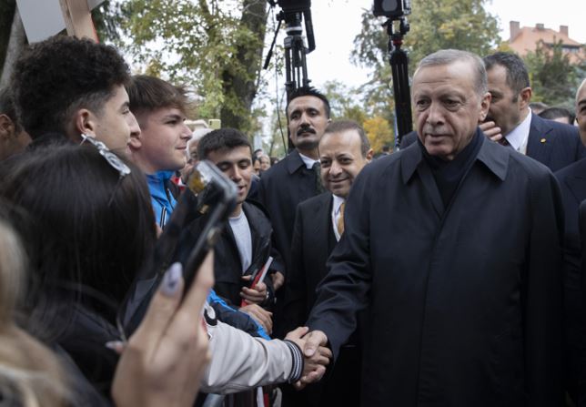 Burada Erdoğan, Türk ve Azerbaycan vatandaşlarının büyük sevgi seli ile karşılandı. Türk ve Azerbaycan bayraklarıyla Erdoğan'ı bekleyen kalabalık, "Hoş geldin" sloganları attı.
