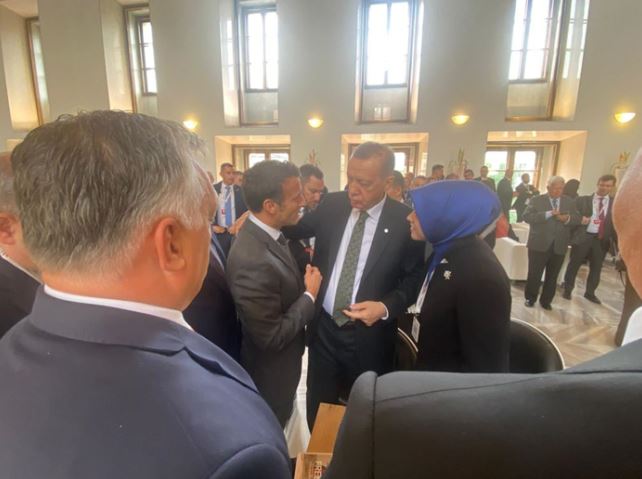 Toplantı öncesi Fransa Cumhurbaşkanı Emmanuel Macron ile sohbet eden Erdoğan, "Gel seni de Türk Birliği'ne alalım. Avrupa Avrupa nereye kadar. Avrupa her şey değil" dedi.