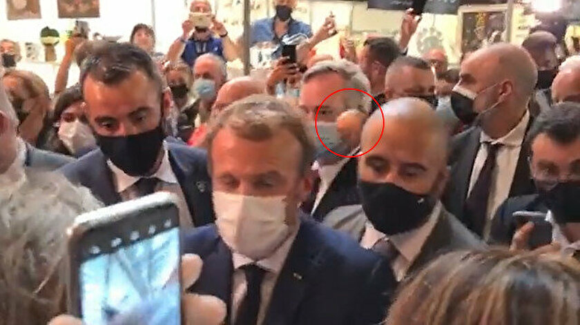 Yumurta Macron'un omuzuna çarpıp sekerek yere düştü. Fransa Cumhurbaşkanı Macron'u korumaları güvenlik çemberine alırken, yumurta fırlatan kişi olay yerinden uzaklaştırıldı.