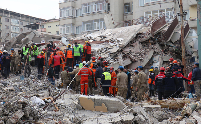 Malatya'da enkaz altında kalan vatandaşların kurtarılması için arama kurtarma ekipleri çalışmalarına devam ederken, Battalgazi ilçesi Zafer Mahallesi Necip Fazıl Kısakürek Caddesi'nde bulunan 7 katlı Gürbüzbey apartmanındaki 3 kişiyi arama kurtarma çalışması sürüyor.