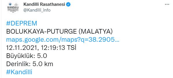 Avrupa Akdeniz Sismoloji Merkezi'nin (EMSC) geçtiği son dakika verilerine göre, Malatya'nın Pütürge ilçesinde 4.8 büyüklüğünde bir deprem meydana geldi.
