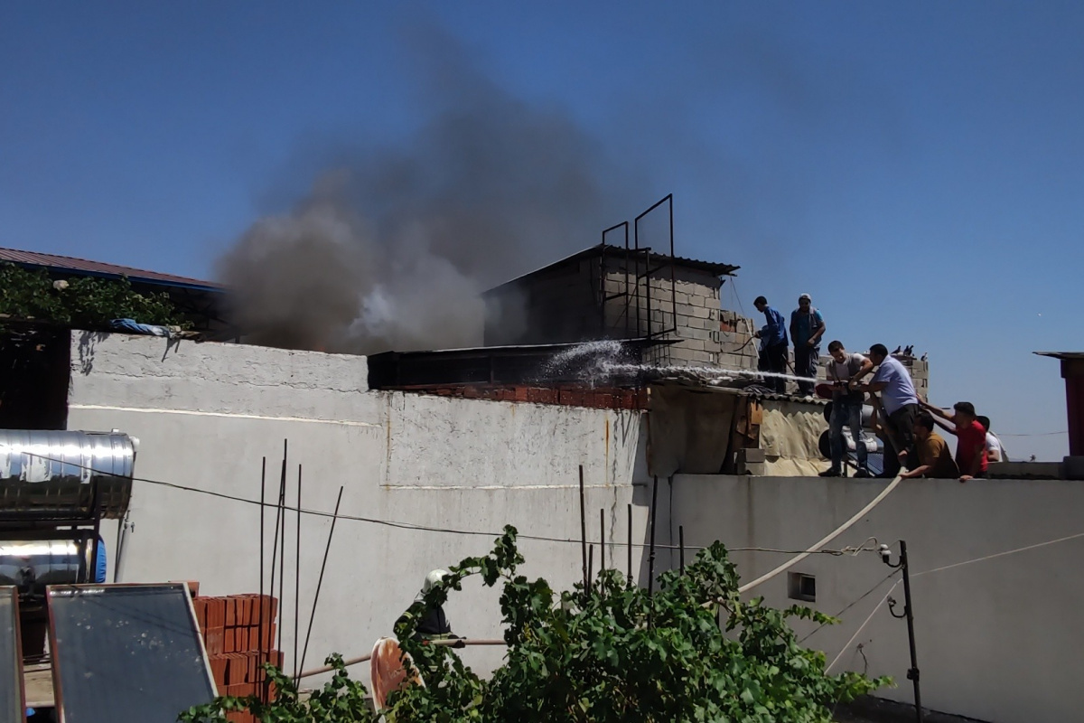 Yapılan ilk müdahale ile alevler kontrol altına alınırken hazırlıklarını tamamlayan itfaiye erleri ise duvarı tırmanarak, evin damına çıktı. Vatandaşlardan hortumu alan ekipler, alevleri tamamen kontrol altına alarak soğutma çalışmalarını yürüttü.