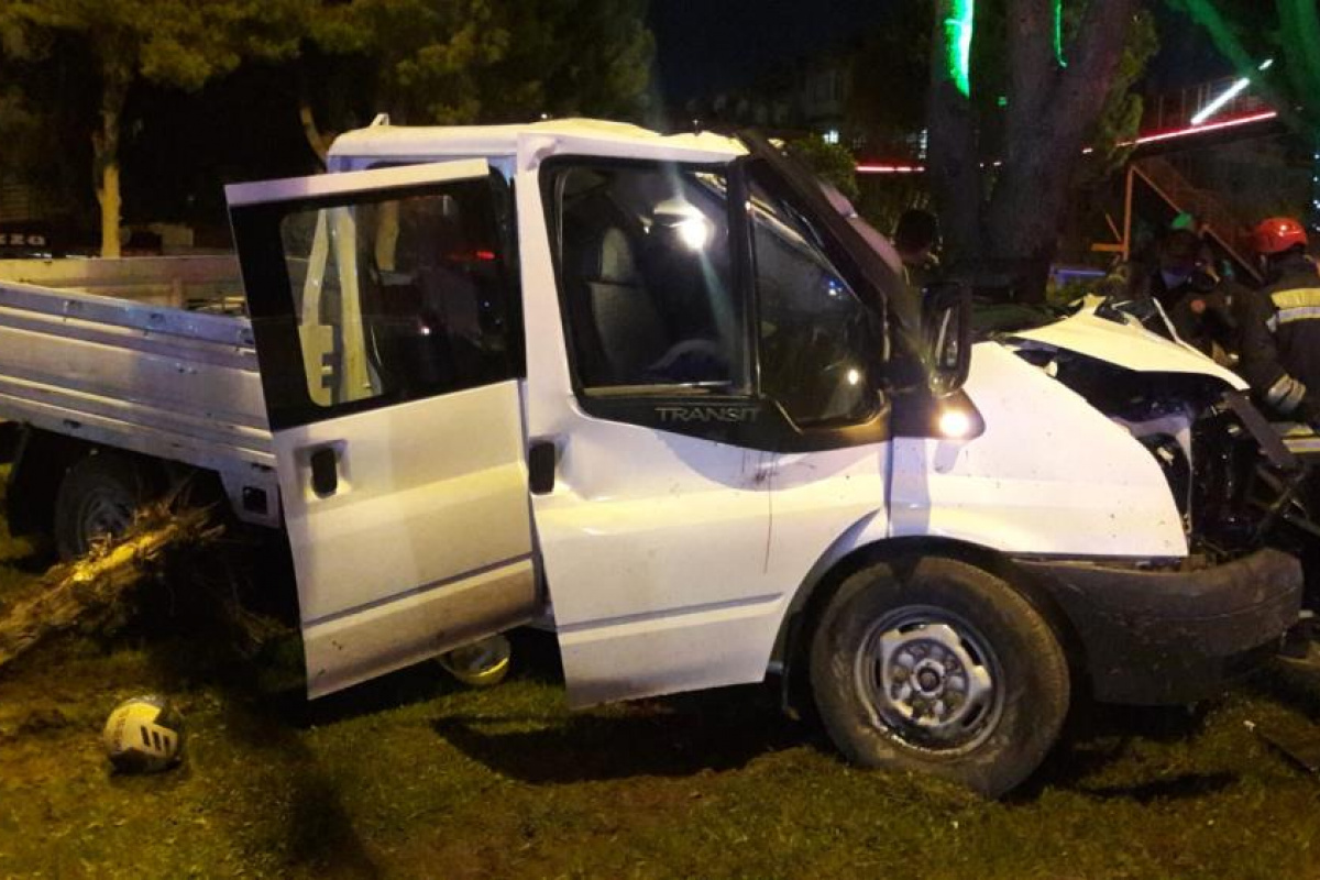 Manisa'nın Yunusemre ilçesinde sürücüsünün direksiyon hakimiyetini kaybettiği kamyonet refüjdeki ağaca ve elektrik direğine çarparak durabildi. Kamyonetteki 2 kişi olay yerinde hayatını kaybetti.