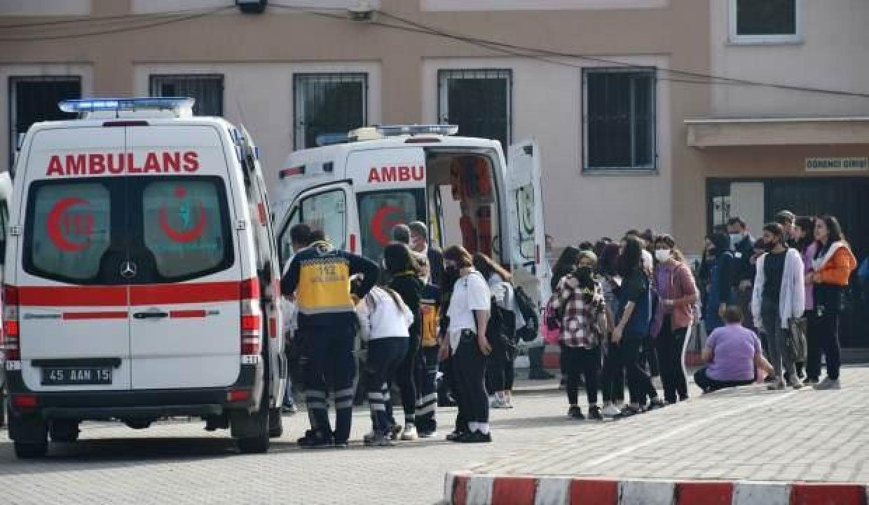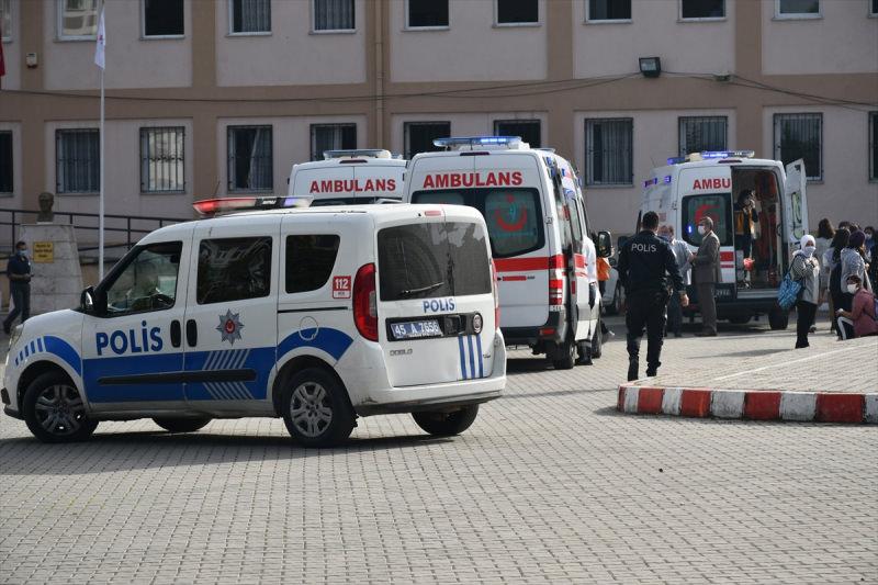 Sağlık ekiplerinin okulda ilk müdahaleyi yaptığı öğrenciler ambulans ve polis otolarıyla Turgutlu'da hastanelere sevk edildi.