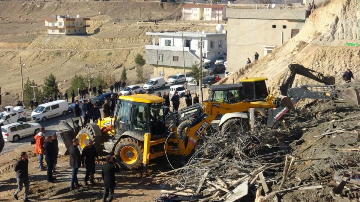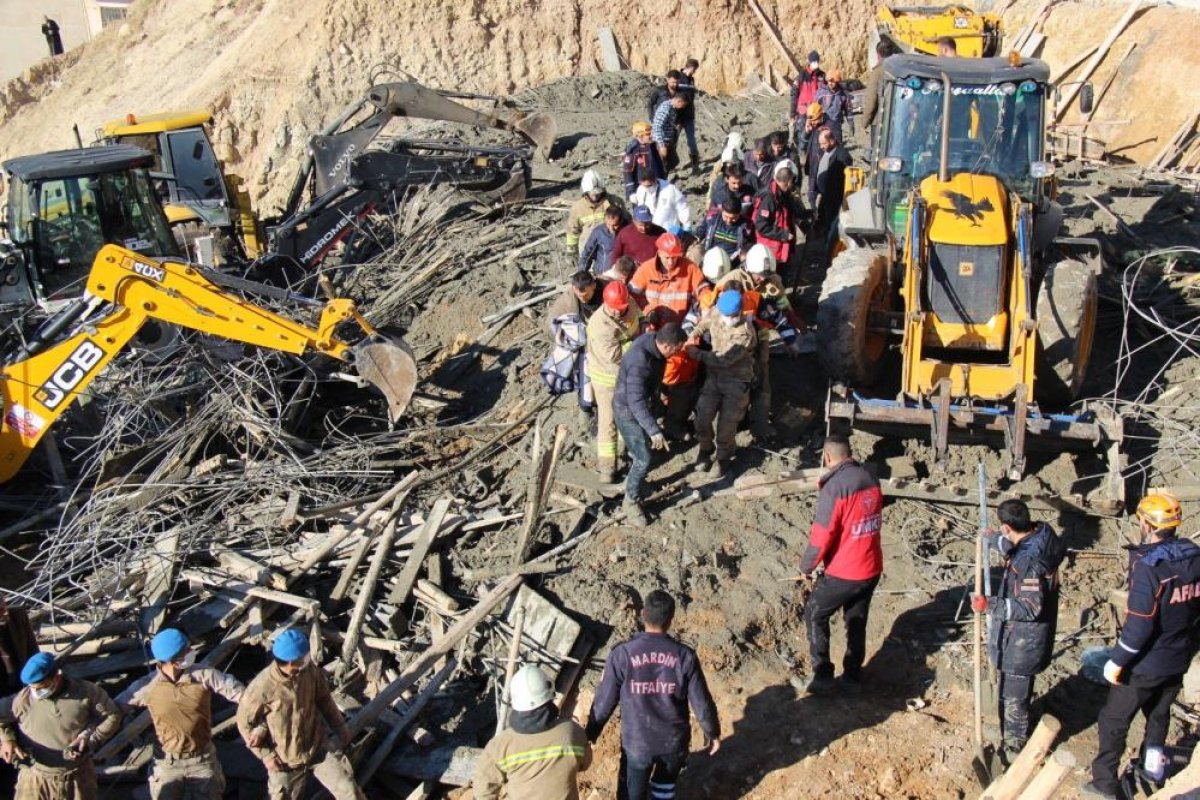 Mardin Artuklu ilçesi Kötek Mahallesi'nde inşaat halindeki tek katlı bina, beton mikserinin harcı boşalttığı sırada çökmeye başladı.