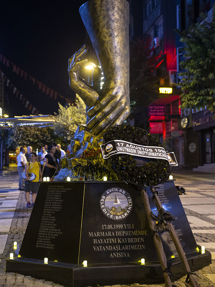 Avcılar’da Marmara Caddesi’ndeki deprem anıtı önünde gerçekleştirilen etkinliğe, Avcılar Belediye Başkanı Turan Hançerli, siyasi ve sivil toplum kuruluşlarının temsilcileri ile depremde hayatını kaybedenlerin yakınları katıldı.