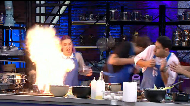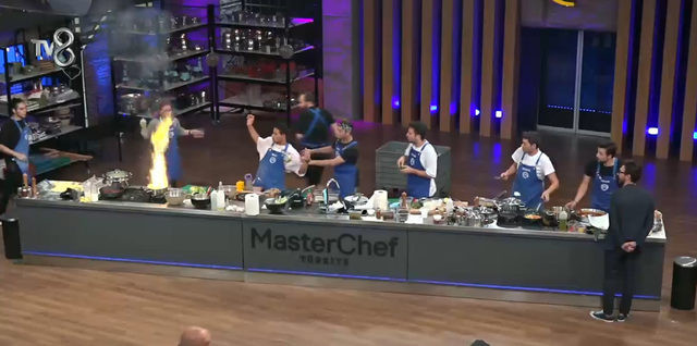 Şef Mehmet Yalçınkaya da "Kızım ne yapıyorsun? Yakacaksın birini. Eliniz yüzünüz yanacak" diye tepki gösterdi.