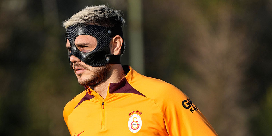 Sarı-kırmızılarda son oynanan derbide sakatlanan Mauro Icardi, idmana maskeyle çıktı.