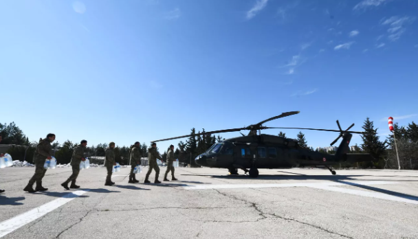 Gaziantep İl Jandarma Komutanlığı’nın takip ve koordinesindeki yardımlar, 5. Zırhlı Tugay Komutanlığında toplanarak askerleri personel tarafından askeri helikopterlere taşındı. Daha sonra havalanan 5 helikopter, 17 sortide İslahiye ve Nurdağı ilçelerinin 15 dağ köyüne iniş yaptı. 7,2 ton içme suyu ve gıda kolisi, 87 çadır, 2 bin 400 bebek bezi ve 700 battaniyeden oluşan yardım malzemeleri, askeri personel tarafından, depremzedelere dağıtıldı.
