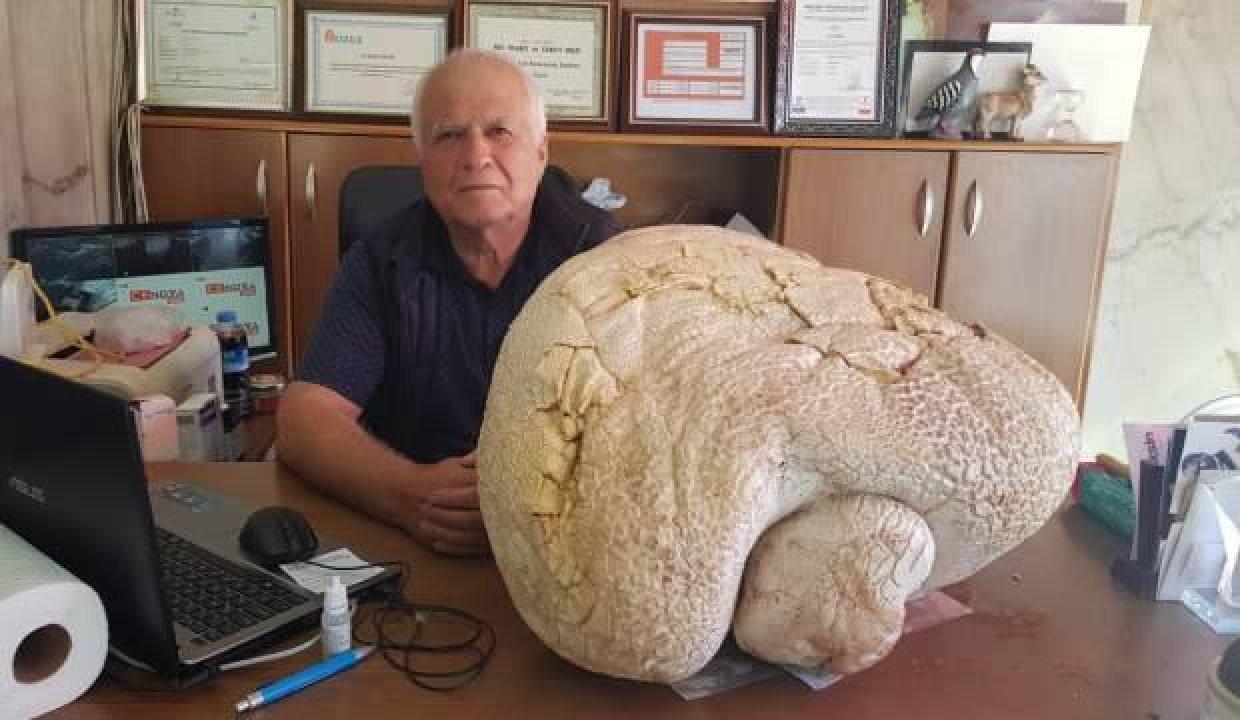 Bulduğu mantarın 20 kilogramın üstünde söyleyen Sezer, "dev" mantarı bir süre bahçesinde sergileyeceğini belirtti.
