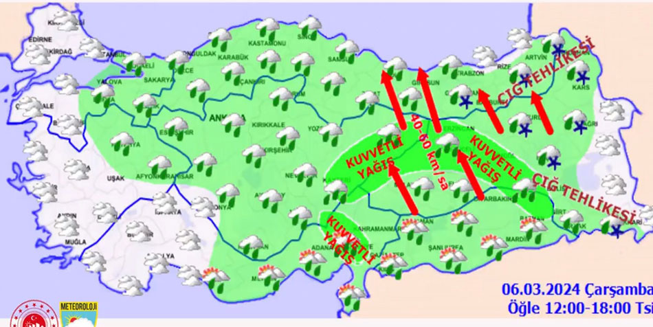Doğu Karadeniz’in iç kesimleri ile Doğu Anadolu’nun kuzey ve doğusunun kar örtüsüne sahip eğimli yamaçlarında çığ tehlikesi bulunduğundan dikkatli ve tedbirli olunmalıdır.