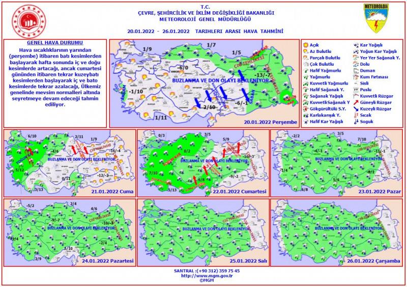 Cuma gecesi sıcaklıklar eksi 4 derecelere kadar inerken, cumartesi, pazar ve pazartesi günleri de soğuk havanın etkisiyle birlikte kar yağışı kendini gösterecek.