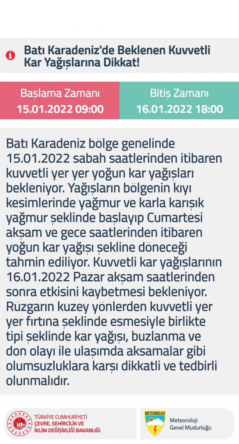 BATI KARADENİZ İÇİN UYARI