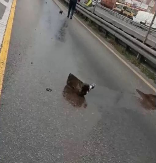 Parçanın görüntüsü ve vatandaşların metrobüs yolundan yürümeleri cep telefonu kamerasına yansıdı.