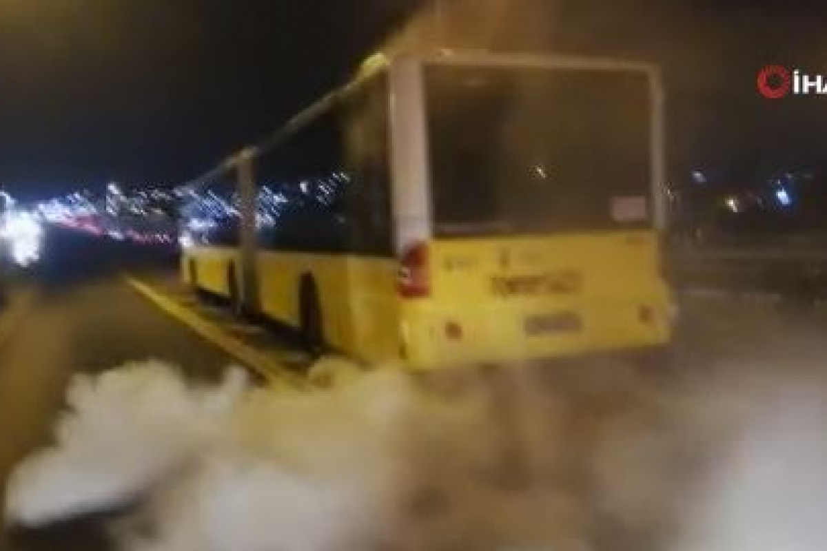 Yangın, saat 22.30'da Halıcıoğlu Metrobüs durağı Beylikdüzü istikametinde seyir halinde olan bir metrobüste çıktı. Edinilen bilgiye göre, henüz bilinmeyen bir nedenle altından dumanların çıktığı görülen metrobüs güvenlik amacıyla boşaltıldı. Boşaltıldıktan bir süre sonra alev alan metrobüs, durakta bulunan güvenlik görevlilerinin yangın tüpüyle müdahalesi sonunda söndürüldü. O anlar ise bir vatandaşın cep telefonu kamerasına yansıdı.