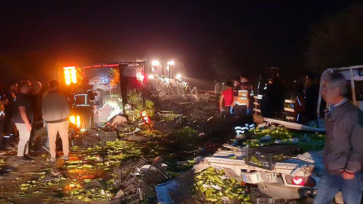 Çarpışmanın şiddetiyle kamyon devrilirken, kamyonet sürücüsü araçta sıkıştı, kasasındaki Suriyeli uyruklu 5 mevsimlik işçi ise yola savruldu. Çevredekilerin ihbarı üzerine kaza yerine çok sayıda jandarma, itfaiye ve sağlık ekibi sevk edildi.