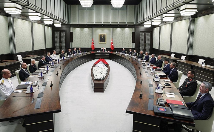 Bildiride, PKK/KCK-PYD/YPG-SDG, FETÖ VE DEAŞ terör örgütleri başta olmak üzere, milli birlik ve beraberlikle, ülke bekasına yönelik her türlü tehdit ve tehlikeye karşı yurt içi ve yurt dışında azim, kararlılık ve başarıyla icra edilen operasyonlar hakkında kurula bilgi sunulduğu belirtildi.