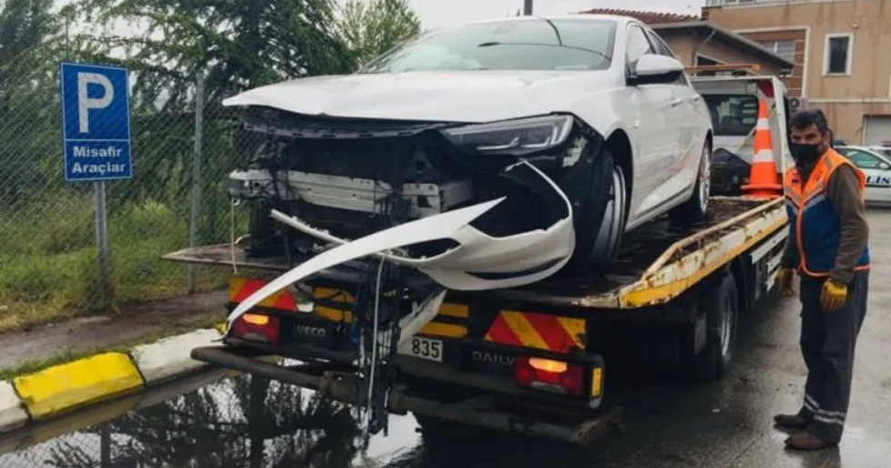 Kazaya karışan aracın kaldırılması amacıyla çalışma yürütülüyor.