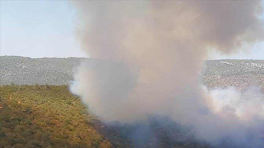 Kıyıkışlacık Mahallesi Gürçamlar mevkisindeki ormanlık ve zeytinlik alanda, henüz belirlenemeyen nedenle yangın başladı.