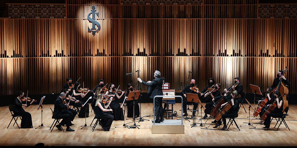 Orkestranın şefliğini üstlenen Hakan Şensoy, Amerika’dan Avustralya'ya uzanan geniş bir yelpazede pek çok ülkede konserler yönetmekte, solist olarak resitaller icra etmektedir. Kariyerinin başında, 1985 yılında İstanbul Filarmoni Derneği tarafından "Yılın En Başarılı Genç Sanatçısı" ve aynı yıl "Sanat Dalında Üstün Başarı" ödüllerini alan Şensoy, aralarında New York Carnegie Hall, Prag Smetana Hall, Lincoln Center – Paris Louvre Auditorium, Milano Sala Verdi’nin de bulunduğu dünyaca ünlü konser salonlarında çok sayıda orkestra konserine solist ve şef olarak katıldı. Orkestra şefi olarak aralarında Sholomo Mintz, Raphael Walfisch, Fazıl Say, Cihat Aşkın, Ryu Goto, Tedi Papavrami, Peter Jablonsky, Gülsin Onay, Steven Isserlis, Peter Jablonsky gibi tanınmış solistlere ve Terence Blanched Band, Bee Gees Band, George Benson, George Dalaras gibi sıra dışı solist ve gruplara eşlik etti.