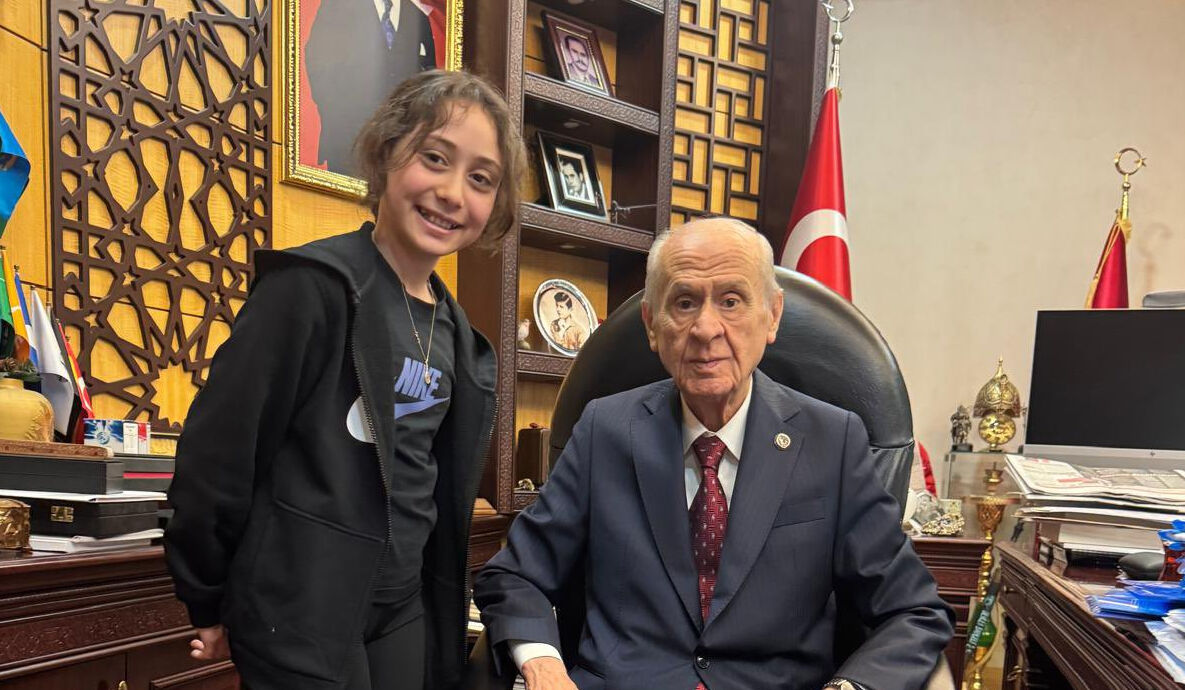 Bahçeli'nin elini öpen küçük kız, ziyarette kendisini de ilgilendiren bir konuyu MHP lideriyle paylaştı. Zuhal Karakoç Dora'nın "Sevgili çocuklar, müjde" ifadeleriyle yaptığı paylaşımda şu ifadeler yer aldı: