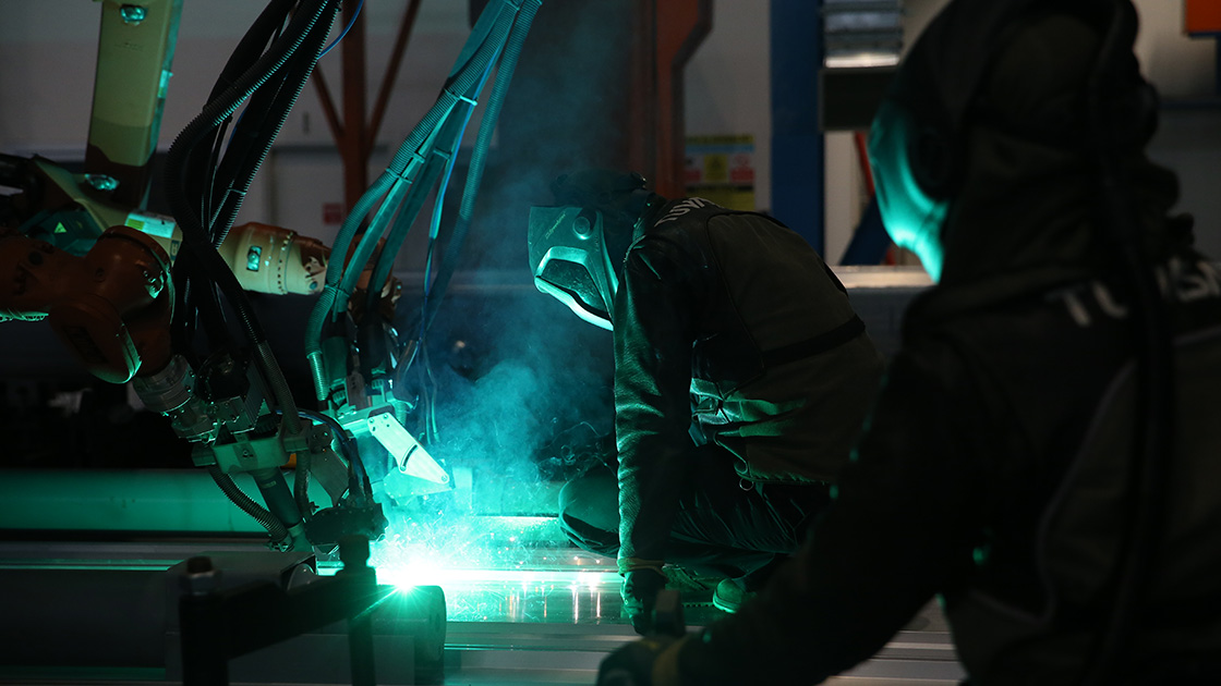 Daha sonra yapımı tamamlanan iki tren, üretim tesisinde bulunan rayların üzerinde yürütüldü.