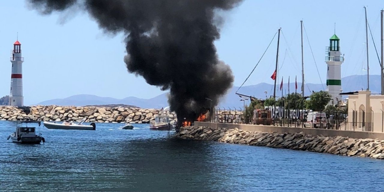Turgutreis D-Marin içerisinde demirli olan 15 metre uzunluğundaki milyon dolarlık süper lüks yat, henüz bilinmeyen bir sebepten dolayı yanmaya başladı.