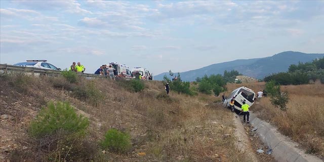 Yolun yaklaşık 5 metre aşağısında bulunan su kanalına girerek durabilen minibüste bulunan yolculardan 3'ü ağır, 6'sı hafif şekilde yaralandı.