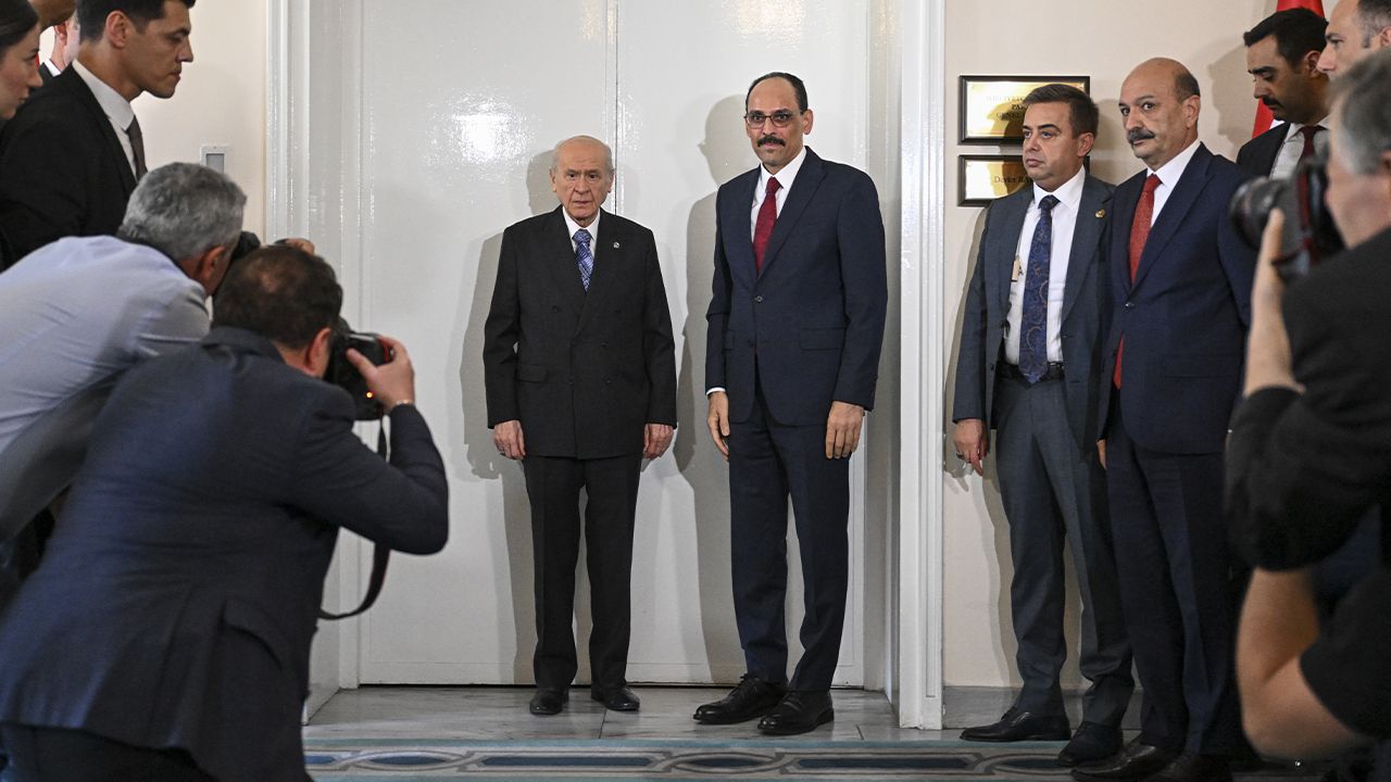 Ziyaretler kapsamında Kalın, saat 12.30'da MHP Genel Başkanı Devlet Bahçeli bir araya geldi. Bahçeli'nin Meclis'teki makamında basına kapalı gerçekleşen görüşme, yaklaşık 45 dakika sürdü.