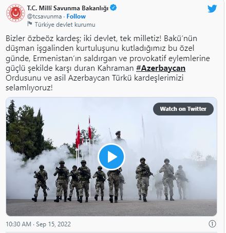 Rap tarzı müziğin yer aldığı klibin paylaşımında, "Bizler özbeöz kardeş; iki devlet, tek milletiz. Bakü'nün düşman işgalinden kurtuluşunu kutladığımız bu özel günde, Ermenistan'ın saldırgan ve provokatif eylemlerine güçlü şekilde karşı duran Kahraman Azerbaycan Ordusunu ve asil Azerbaycan Türkü kardeşlerimizi selamlıyoruz." ifadelerine yer verildi.
