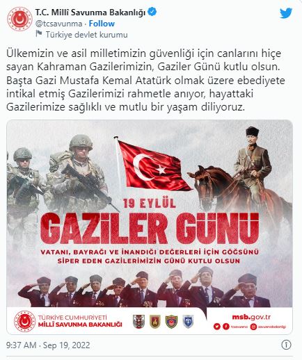 Mustafa Yıldızdoğan'ın, "Ölürüm Türkiyem" şarkısını seslendirdiği video, Gaziler Günü etiketi ve "Ölürsek şehit, kalırsak gazi / Vatan için can vermek pek ali / Şan ve şeref yazıldı göğsümüze / Vatan sevgisi baki içimizde…Bayrak için vatan için canını hiçe sayan tüm kahramanlarımıza selam olsun." mesajıyla paylaşıldı.