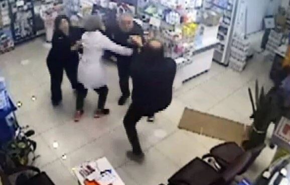 İçeride bulunanlar Adil A.'yı engellemeye, eczacı da yediği yumruğun ardından kendisini savunmaya başladı.