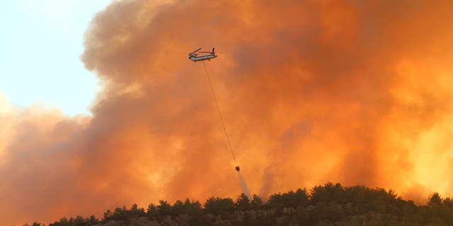 Sabahın ilk ışıkları ile birlikte yangına havadan 8 helikopter, 5 uçak ile müdahale edilmeye başlandı.