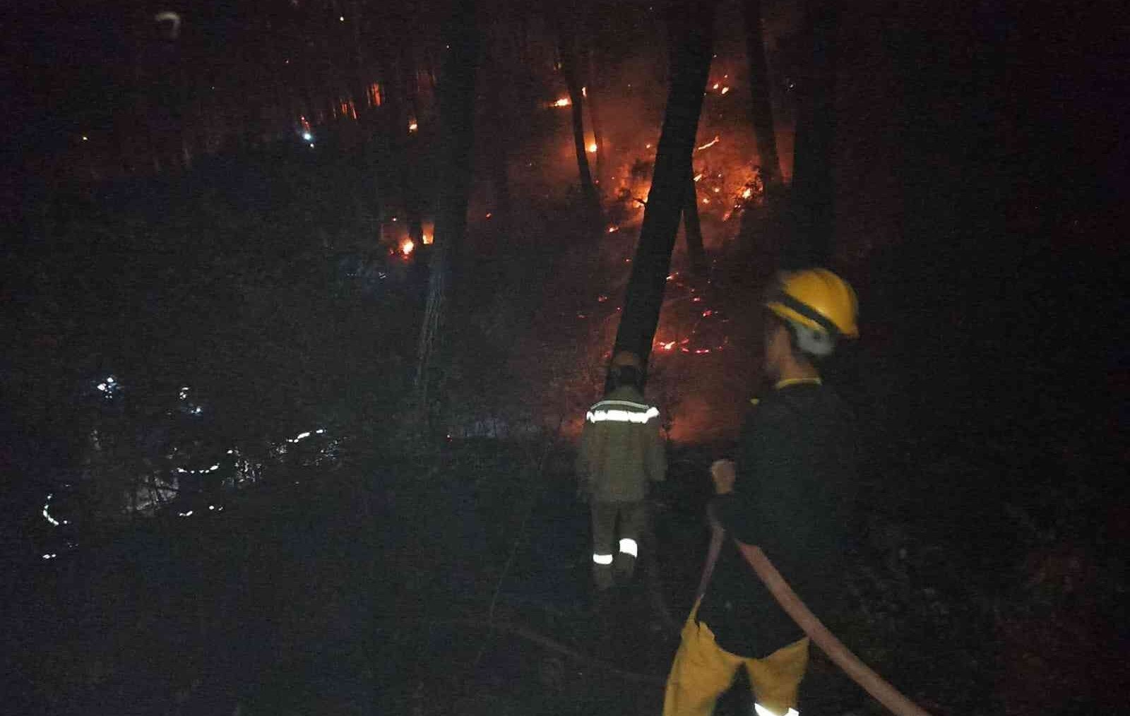 Rüzgarla birlikte etkisini arttırarak sürdüren ve geceyi aydınlatan alevleri söndürmek için ekiplerin karadan müdahalesi devam ediyor.