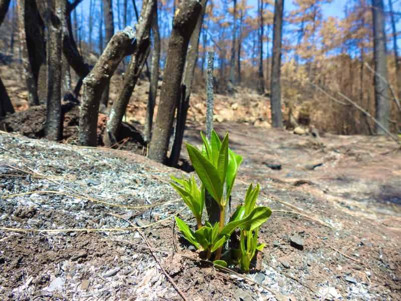 Antalya ve Muğla bölgesi başta olmak üzere Türkiye tarihinin en büyük orman yangınlarını yaşadı. 28 Temmuz'da başlayıp, günlerce süren yangınlarda ilk belirlemelere göre sadece Antalya ve Muğla'da 124 bin hektar, Türkiye genelinde ise 178 bin hektar alan yangınlarda yok oldu. Manavgat yangınından bir hafta sora kuş gözlemcisi Gökçe Coşkun, yanan alanlarda yaptığı incelemelerde, maki türü bir bitki olan hayıt çiçeklerine ait filizleri görüntüledi. Manavgat yangını sonrası başlayıp, yine iki hafta civarında süren Muğla'daki yanan alanlardan da ilk filizler Muğla Sıtkı Koçman Üniversitesi'nden yaban hayatı uzmanı Dr. Yasin İlemin tarafından görüntülendi.
