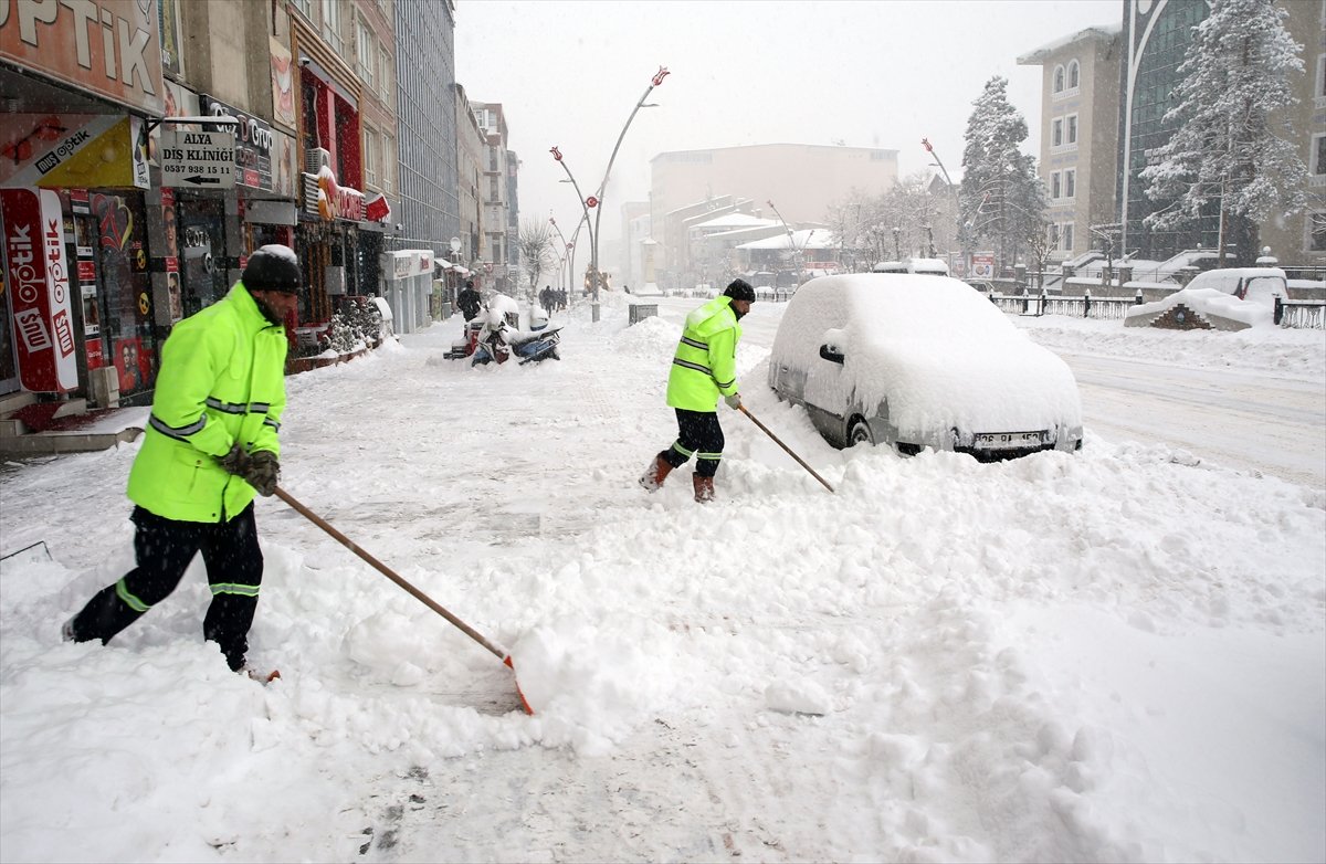 Belediye ekipleri, sabahın ilk ışıklarında cadde, sokak ve kaldırımlardaki karları temizlemeye başladı. Sabah bazı vatandaşlar, karla kaplanan araçlarının üzerini temizledi.