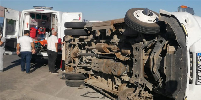 Muş'un Hasköy ilçesinde Sungu beldesindeki tekstil atölyesine işçi taşıyan sürücüsünün ismi henüz belirlenemeyen 49 AAH 237 plakalı minibüs, Muş-Bitlis kara yolu havaalanı kavşağında devrildi.
