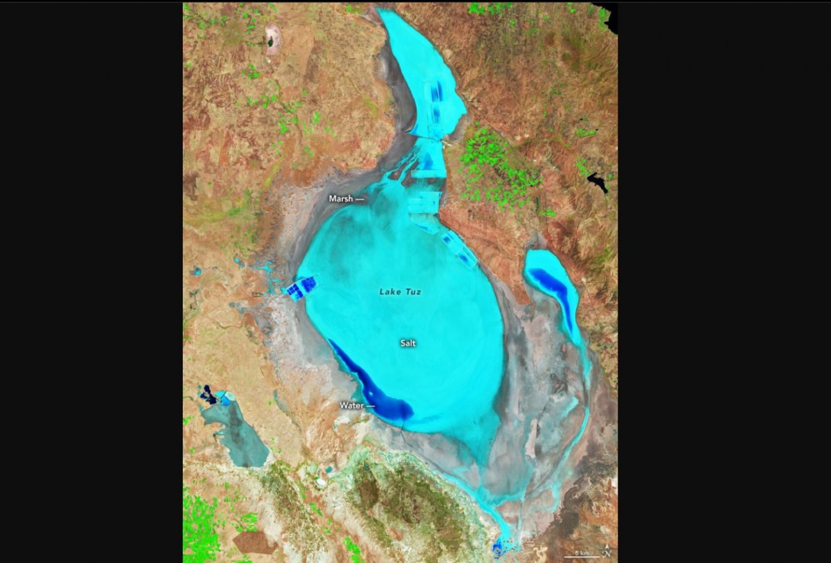 NASA, Tuz Gölü'nün yıllara göre nasıl değiştiğini "Bir zamanlar Türkiye’nin en büyük ikinci gölü olan Tuz Gölü, artık zar zor küçük bir su birikintisi kadar yer kaplıyor.” ifadeleriyle duyurdu.