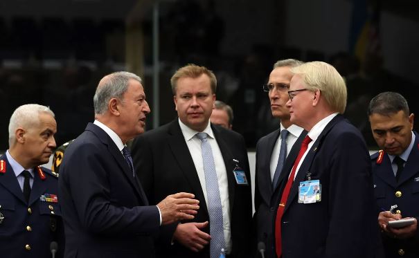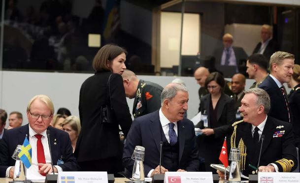 Akar, İsveç Savunma Bakanı Peter Hultqvist ve Ukrayna Savunma Bakanı Oleksii Reznikov ile ayaküstü görüştü.