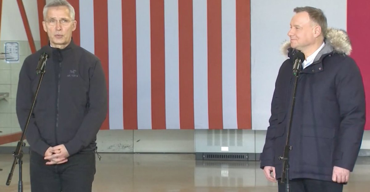 NATO Genel Sekreteri Jens Stoltenberg, Polonya'daki NATO üssünde Polonya Devlet Başkanı Andrzej Duda ilşe birlikte basın toplantısı düzenledi.