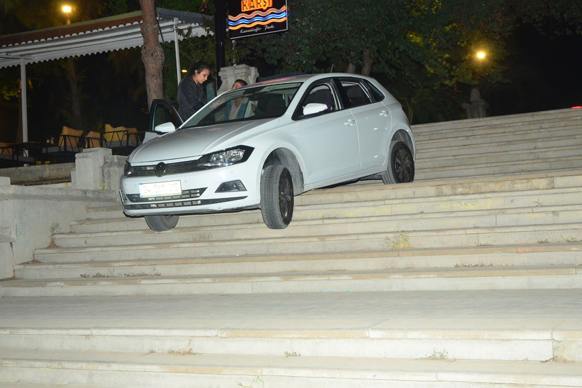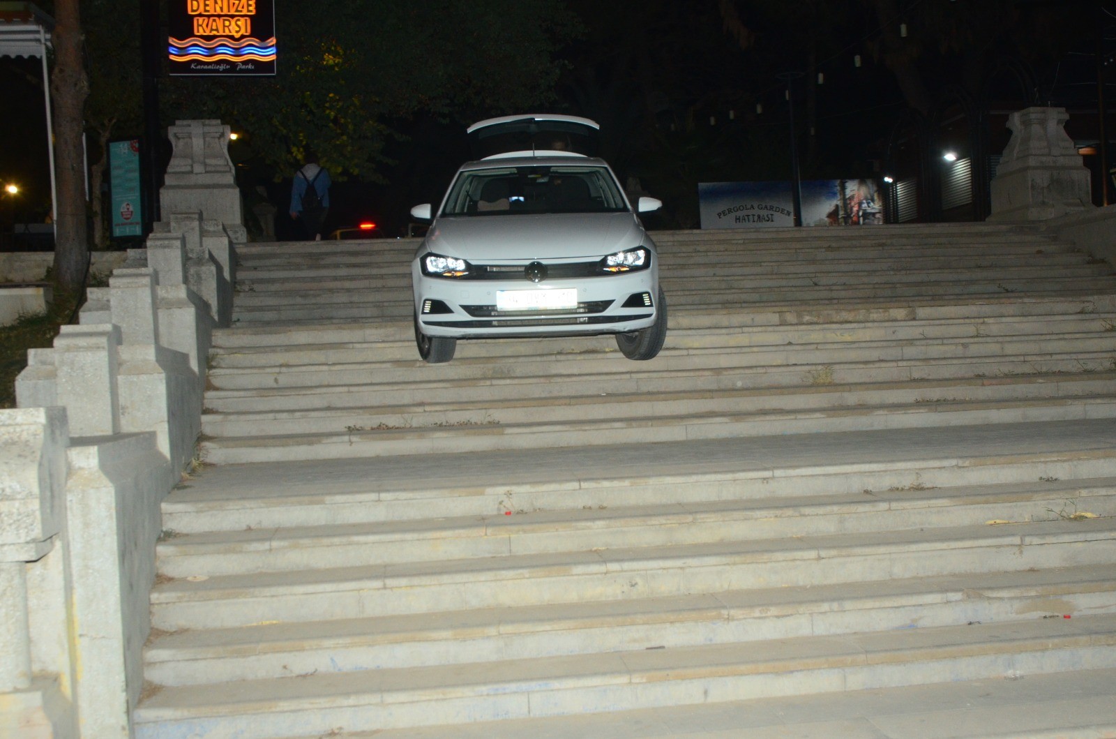 Edinilen bilgiye göre, olay, dün gece Muratpaşa ilçesi Karaalioğlu Parkı'nda meydana geldi. Parkın trafiğe kapalı bölümüne 34 DVM 310 plakalı otomobiliyle gelen E.T., iddiaya göre, aldığı alkolün de etkisiyle direksiyonu merdivenlere doğru kırdı. Vatandaşların yardım çabasına aldırmayan E.T, yavaş yavaş merdivenlerin bir bölümünden indi. Tamponundan zarar gören otomobil merdivenin ortasında asılı kaldı. Merdivene geldiğini anlayamayan sürücü, aracı zorlayarak ilerlemeye çalıştı. Çevre esnafının ihbarı üzerine olay yerine polis ekibi sevk edildi. Ekipler, E.T'yi otomobilden indirerek ekip aracına aldı. Polis ekiplerinin yaptığı alkol testinde, sürücünün 1,33 promil alkollü olduğu belirlendi.